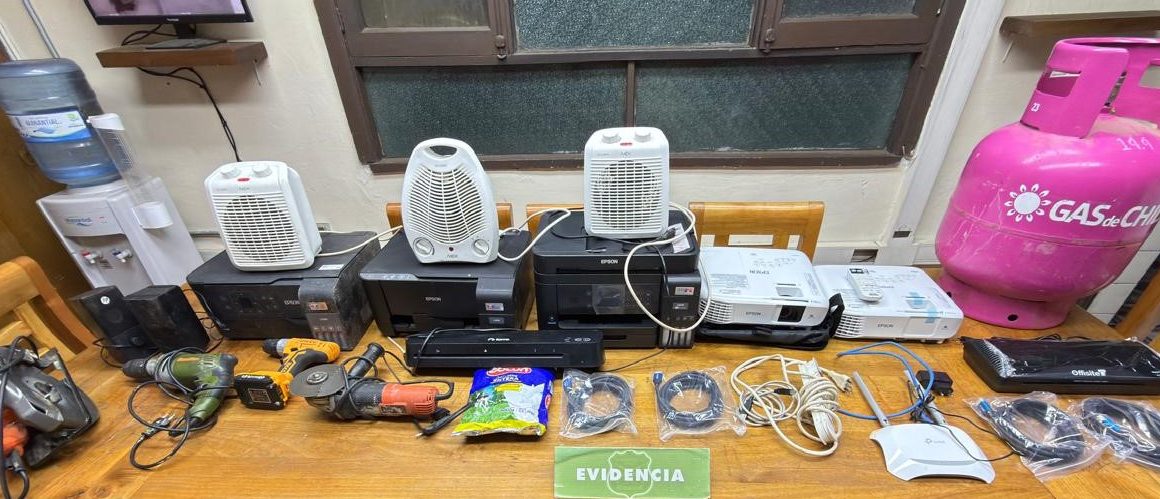 Dentro de las especies sustraídas se encontraban impresoras, proyectores, herramientas, cilindro de gas, entre otras.