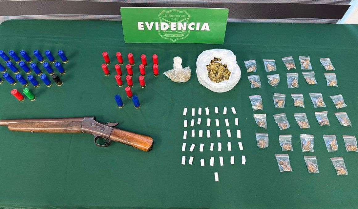 Posteriormente, fue identificado como G.I.Y., de nacionalidad chilena, quien registra 8 reiteraciones por diversos delitos y mantenía una orden de detención vigente. En el inmueble se incautó una escopeta sin marca ni número de serie, 36 cartuchos calibre 12 mm y diferentes dosis de droga, entre ellas cocaína y marihuana.