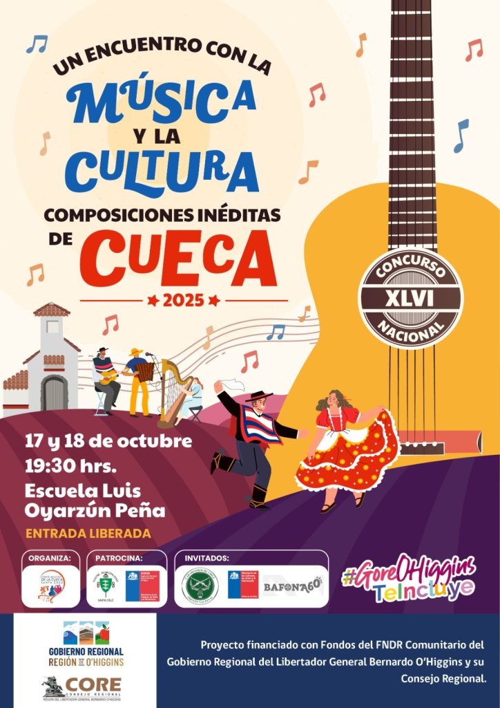 Con el objetivo de preservar, promover y difundir la cueca como expresión musical y literaria, se realizará en Santa Cruz este 17 y 18 de octubre la 46ª versión de Composición Inédita de Cuecas 2025, una tradicional cita cultural que convoca a autores y compositores de todo el país.
