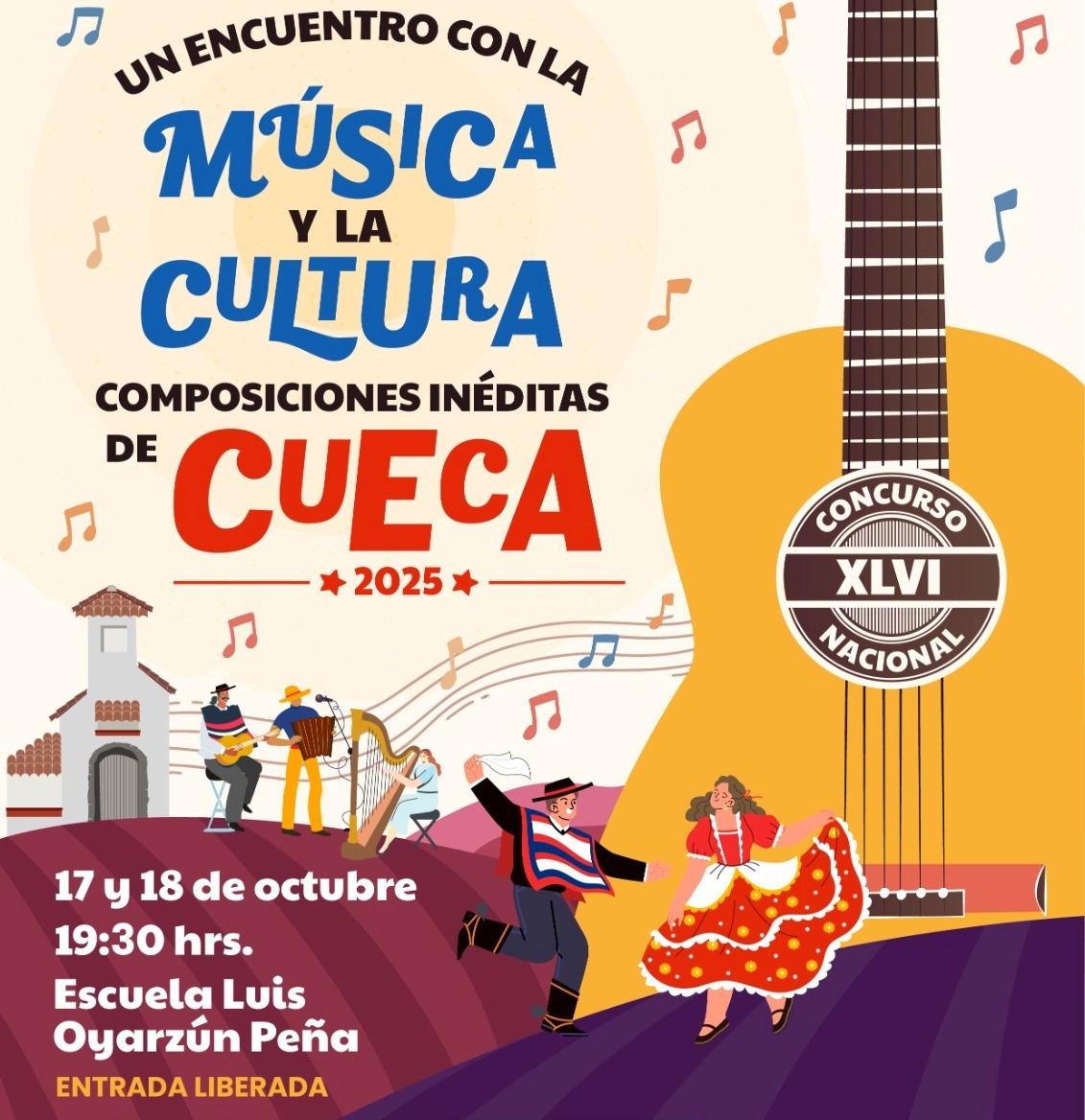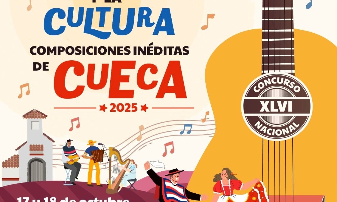 Con el objetivo de preservar, promover y difundir la cueca como expresión musical y literaria, se realizará en Santa Cruz este 17 y 18 de octubre la 46ª versión de Composición Inédita de Cuecas 2025, una tradicional cita cultural que convoca a autores y compositores de todo el país.