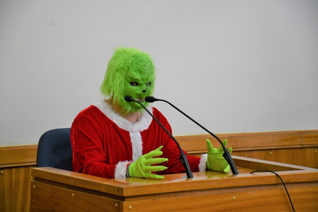 La actividad -organizada en conjunto entre la Corte de Apelaciones de Rancagua, el Juzgado de Garantía, la Defensoría Penal Pública y la Fiscalía- consistió en un juego de roles en que los alumnos y alumnas ejercieron los cargos de juez, fiscal y defensor en el marco de una audiencia de formalización en que se le imputó al Grinch el delito de robo en lugar no habitado tras ser detenido por robar juguetes desde una bodega que iban a ser entregados a los niños y niñas de la ciudad esta navidad.