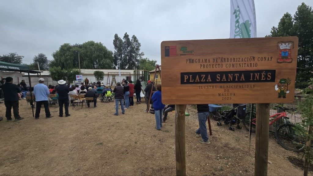 En el sector Santa Inés de la comuna de Malloa se inauguró un Proyecto Comunitario de CONAF que permitirá contribuir al mejoramiento de la calidad de vida del vecindario, a través del incremento de árboles y la implementación de infraestructura comunitaria sustentable, que fomente espacios públicos más verdes, seguros y accesibles para toda la comunidad, en lo que antes era un sitio eriazo a un costado de la sede vecinal.