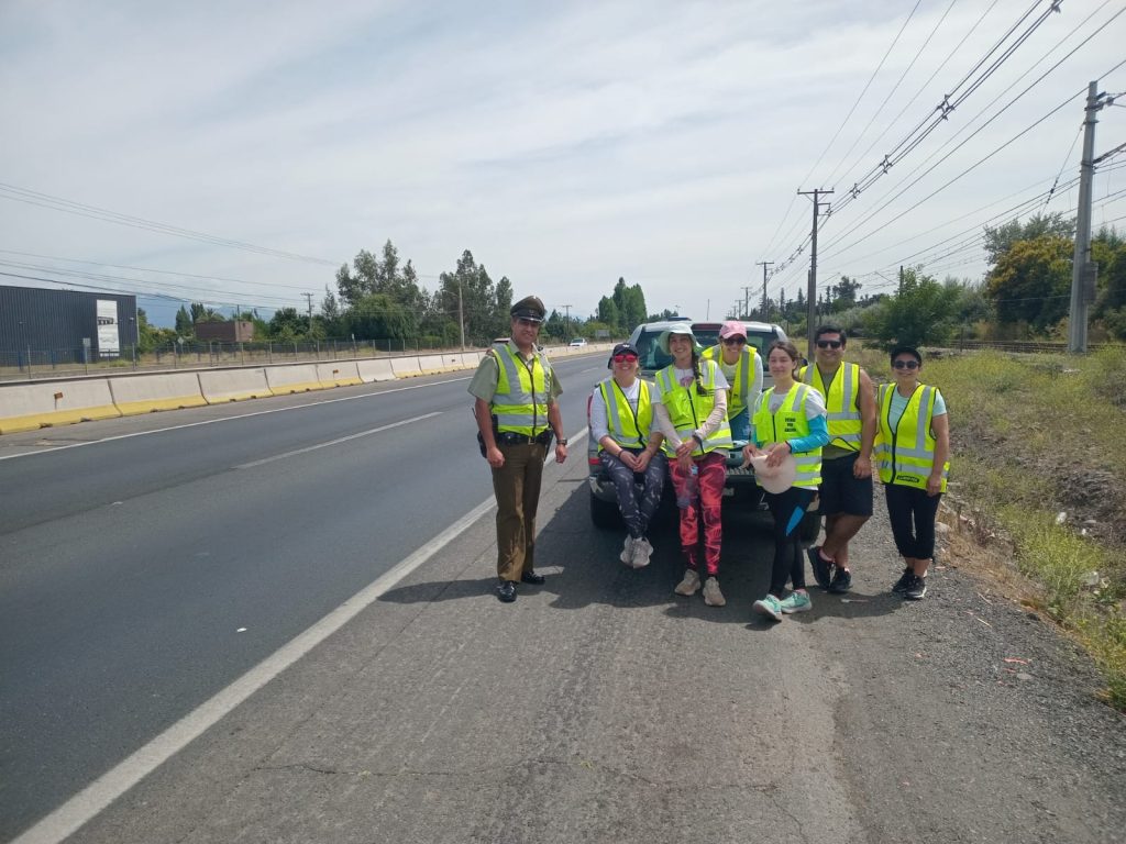 Durante el fin de semana, personal de la MICC de la 4ª Comisaría de Rengo, en conjunto con funcionarios de la MICC de la Subcomisaría de Requínoa, realizó una destacada labor comunitaria entregando seguridad vial y acompañamiento preventivo a la señora Lidia Monroy, quien se encuentra realizando un recorrido a pie por la Ruta 5 Sur con destino a la Región Metropolitana.
