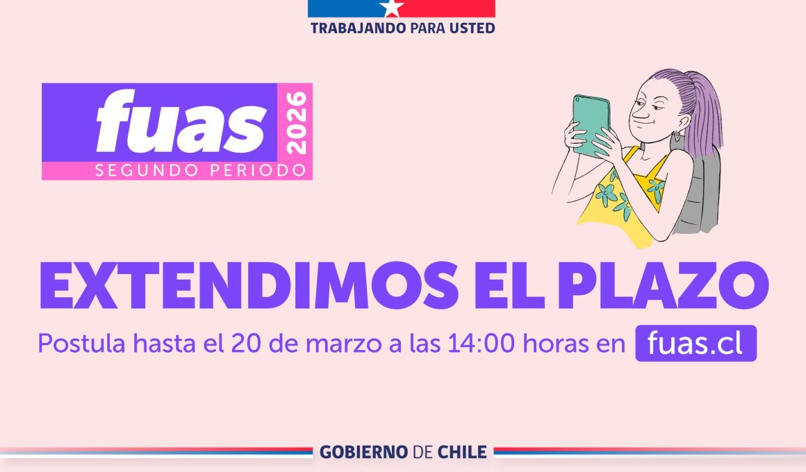 Adicionalmente, junto con la extensión del plazo para completar el FUAS, también se amplió el periodo de postulación a la Beca Vocación de Profesora y Profesor y a las Becas de Reparación, beneficios que cuentan con formularios de postulación propios, disponibles en el mismo sitio web.