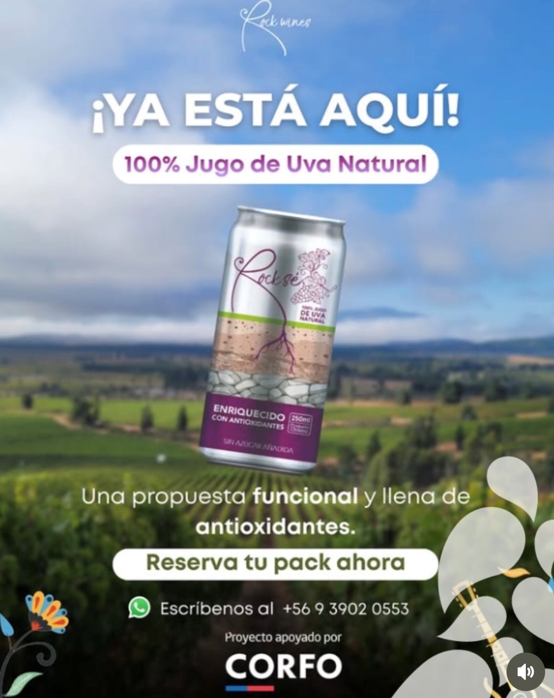 Rocksé, Jugo enriquecido con antioxidantes de la misma uva, ya se encuentra en algunas tiendas especializadas en vinos y además, disponible para compra online en www.rockwines.cl