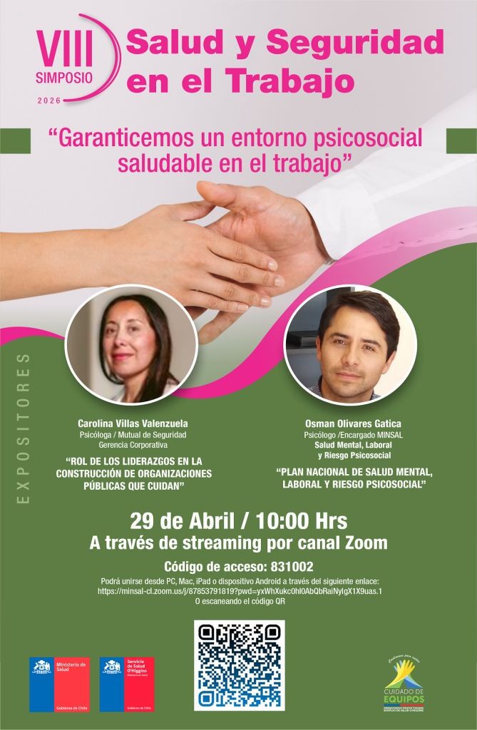 El VIII Simposio cuenta con el patrocinio del Ministerio de Salud, a través del Departamento de Salud y Seguridad en el Trabajo de la Subsecretaría de Redes Asistenciales, consolidándose como una instancia relevante para avanzar hacia espacios laborales más seguros, saludables y respetuosos.