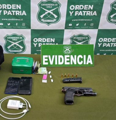 PortadaCarabineros detiene a dos individuos por arma de fuego y droga que mantenían en su vehículo adminmarzo 20, 2025320 Vistas En un control vehicular fueron detectados por la Sección Motorizada de la 1° Comisaría de San Fernando. A… 0 Compartido 0 0
