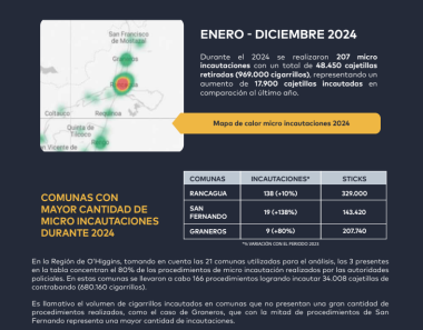 PortadaRegión de O’Higgins registra un aumento de más del 50% en incautaciones de cigarrillos de contrabando durante 2024 adminmarzo 20, 2025245 Vistas De acuerdo al informe, el comercio ambulante se mantiene como el principal canal de comercialización de este producto… 0 Compartido 0 0