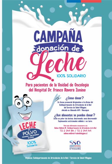 PortadaServicio de Salud O´Higgins lidera campaña solidaria en beneficio de pacientes oncológicos del HFRZ adminmarzo 4, 2025190 Vistas Esta iniciativa busca recolectar leche en polvo descremada sin lactosa y suplementos alimenticios para contribuir a la nutrición… 0 Compartido 0 0